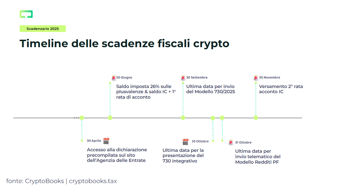Il calendario fiscale crypto del 2025 prevede varie scadenze: