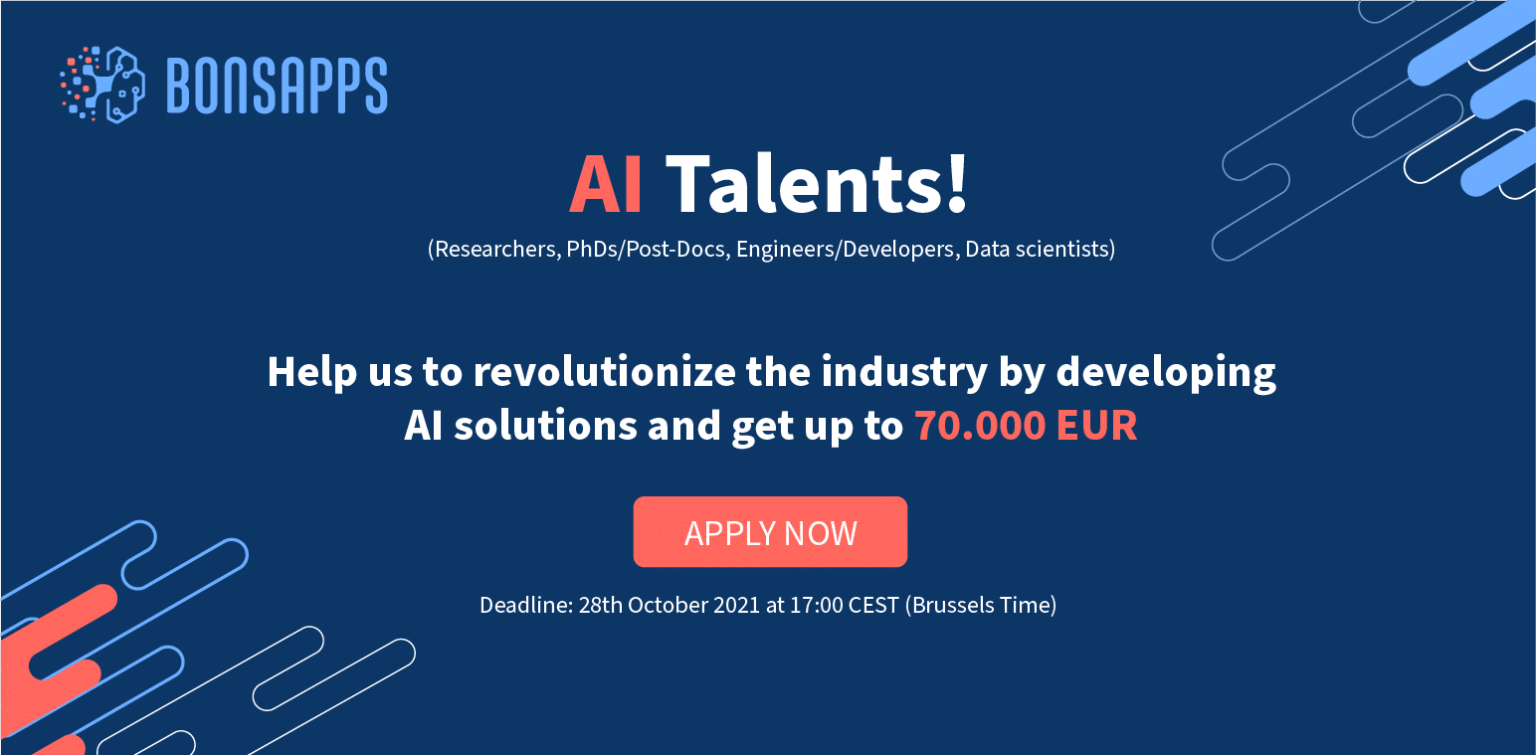 BonsAPPs, progetto Horizon 2020 che mira ad aiutare le PMI nel loro processo di digitalizzazione, ha lanciato un nuovo bando per individuare talenti nell’ambito dell’intelligenza artificiale che riescano a offrire soluzioni sicure, riutilizzabili e affidabili per rivoluzionare le reti di comunicazione europee.